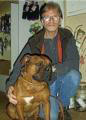 was greeted with hugs and kisses by a powerful muscular dog yet